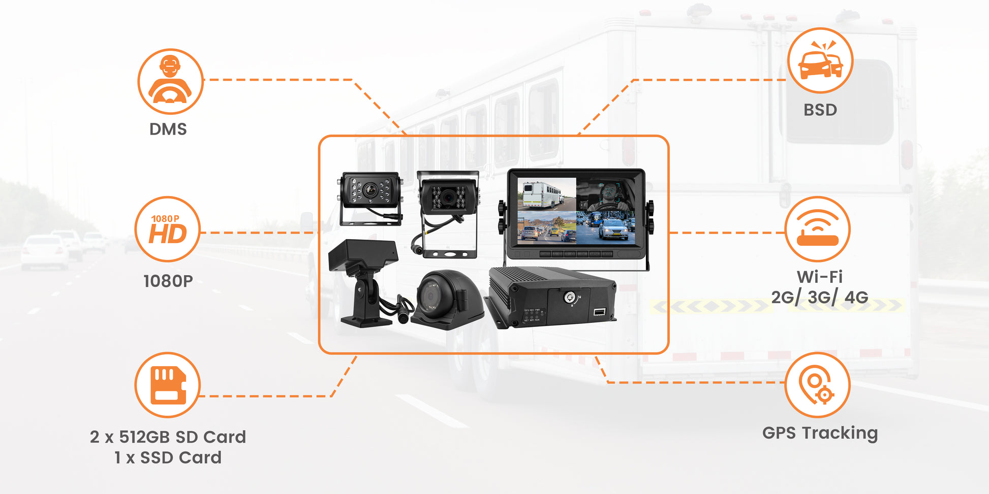 4. Comprehensive Evidence Capture Supports up to nine flexible recording triggers (including motion, G-Sensor, over-speeding, DMS/ADAS/BSD warnings, 6-channel custom alarms, and panic button), with all triggers including 15-second pre-recording to ensure complete capture of critical events.