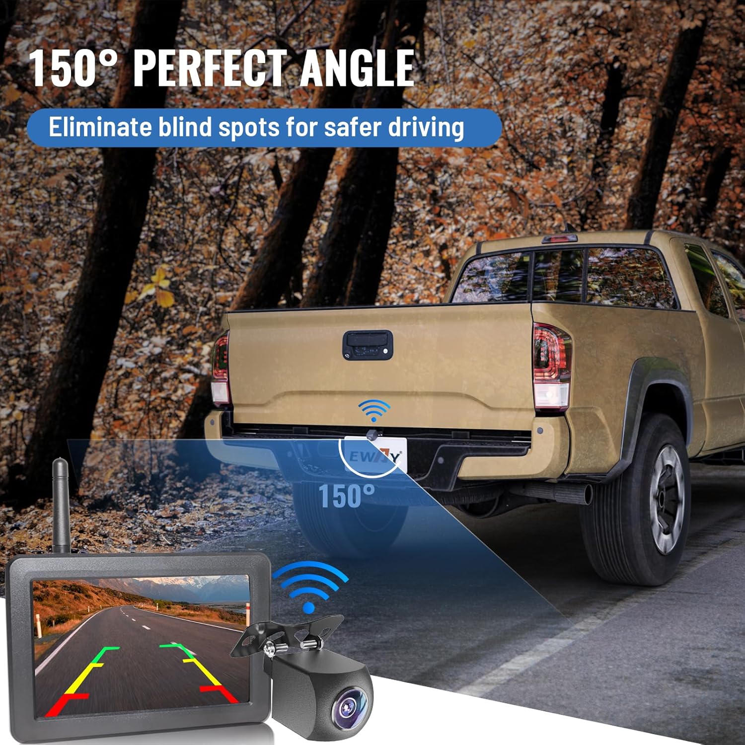 EWAY Wireless Backup Camera HD 1080P 5" Monitor Kit, Stable Digital Signal for Truck Trailer Front Rear Side View Back Up Camera Easy Setup Vehicle Reverse Wifi Camera for Car Van SUV Pickup RV Camper