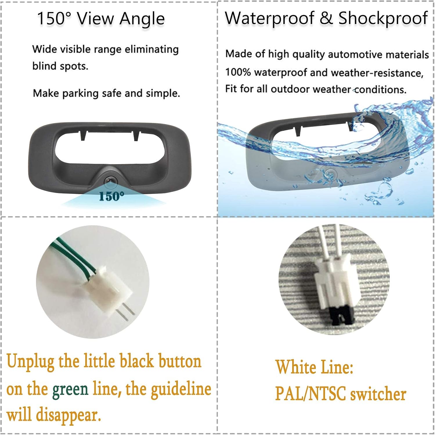 - Easy to Hitch Up: - This tailgate handle with rear camera replacement offers a higher view from the latch position, this backup camera offers just a right viewing angle of the hitch ball, which helps drivers get easy hoop up your truck to trailer. Optional parking line with "ON/OFF" switch. No cutting wire required. A great upgrade for your Silverado or Sierra OEM Tailgate Handle Latch.